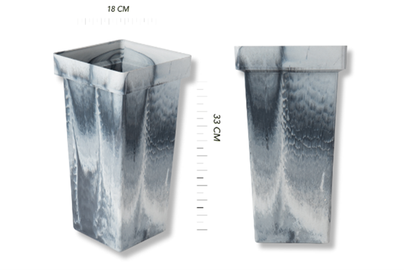 Es una maceta elaborada en polipropileno posindustrial de alta resistencia para el cultivo de plantas ornamentales de interior y exterior, con acabado brillante en diferentes colores y textura lisa.